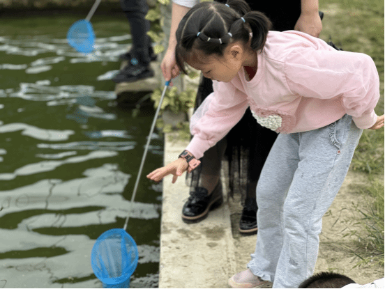 “平时工作忙,很少有机会这样亲近大自然,”青年教师们边帮孩子们整理捞鱼网一边说,“这样的活动既放松了心情,又增进了同事之间的交流,真的很不错。”