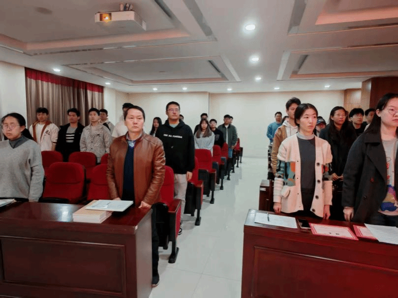 大会第一项,全体成员奏唱国歌,全体参会人员庄严肃立,高唱国歌。