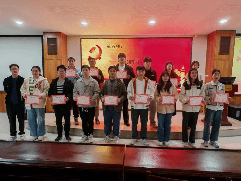 最后,辅导员张得运、唐琼为2025届党支部成员颁发聘书,并为2024届党支部书记赠送书籍。张得运强调,新一届党支部成员要树立团队意识和大局观念,分工协作,共同推进党支部工作不断向前发展。