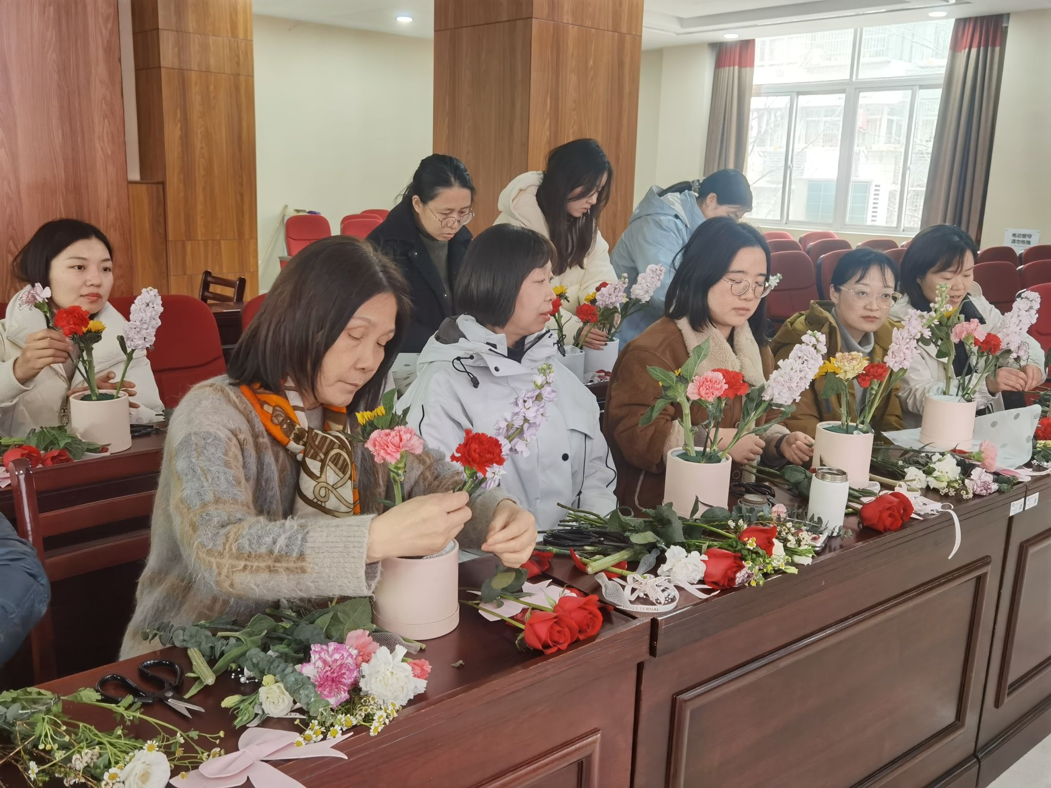 三月春风携春至,满庭花影映红妆。3月5日下午,在第115 个“三八”国际妇女节即将到来之际,51cg最新爆料网页版组织全院女教职工开展了插花活动,以花为媒,为全院女性教职工送上温馨美好的节日祝福。