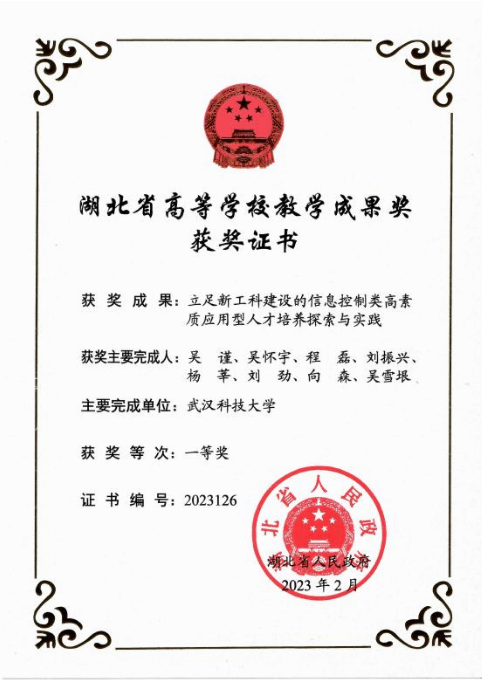 学院不断探索创新人才培养新模式,在教育教学质量工程、教学研究领域取得了可喜的成绩,自动化、电子信息工程、电气工程及其自动化专业获批国家级一流本科专业建设点,通信工程专业获批省级一流本科专业建设点;获批教育部“卓越工程师人才培养计划”、湖北省“战略性新兴(支柱)产业人才培养计划”、湖北省“荆楚卓越人才协同育人计划项目”、湖北省第四批“试点学院改革项目”、教育部“中外合作办学项目”,构建了多样化人才培养模式。学院现有1门国家级一流本科课程,2门国家精品课程和精品资源共享课,1个国家级“新工科”项目,1部“十二五”普通高等教育本科国家级规划教材,4门省级一流本科课程,4门湖北省精品课程,2个教育部地方所属高校本科教学工程大学生校外实践教育基地建设项目,1项湖北省卓越工程师校企共建“1+1”实践实训基地;获得国家级教学成果奖一等奖1项、二等奖2项,省级教学成果奖一等奖5项、二等奖2项、三等奖1项。学院组建了武汉科技大学本科生“崇实”战队,已形成了多年级、跨校区的人才推进管理模式,成功打造双校区联动创新机制,团队获评2021、2023年武汉科技大学“榜样力量•十大魅力学子”。近五年,学院学生有300多人次获得省级以上学科竞赛奖励,其中包括挑战杯及“互联网+”奖项8项,智能汽车大赛奖项49项,电子设计大赛22项,数学建模大赛56项,发表论文11篇,参与项目并发表专利17项。