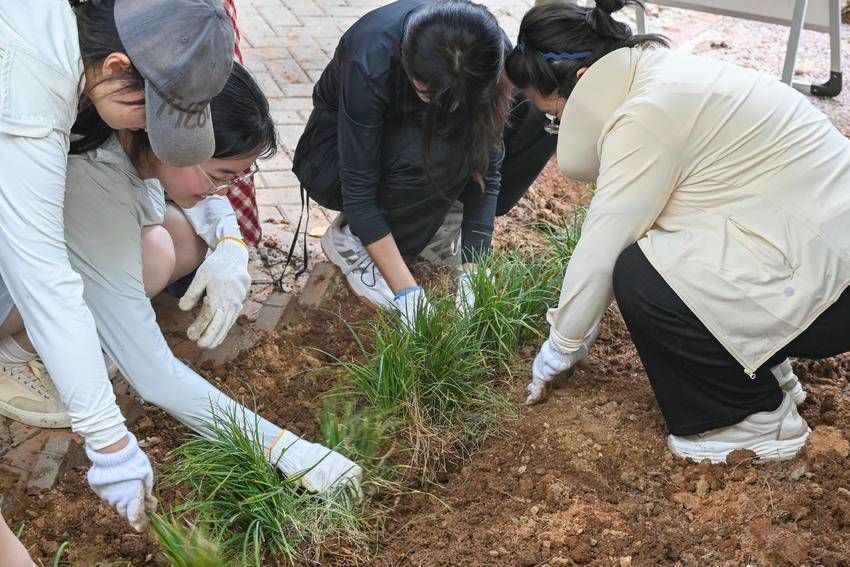 该校一站式学生社区外曾有数块荒地,常年无人打理。如何激发学生主观能动性,引导学生在春日挥洒汗水、享受劳动快乐?为此,武汉科技大学电子信息、人工智能与自动化学院2023级辅导员邓李欣选择了社区外的空地,移栽月季,并购买向日葵、牡丹、花生、番茄等易于养育的植物,邀请学生充当“开荒人”。“没想到学生都很积极,有一百余人加入了种植团队。”邓李欣表示。